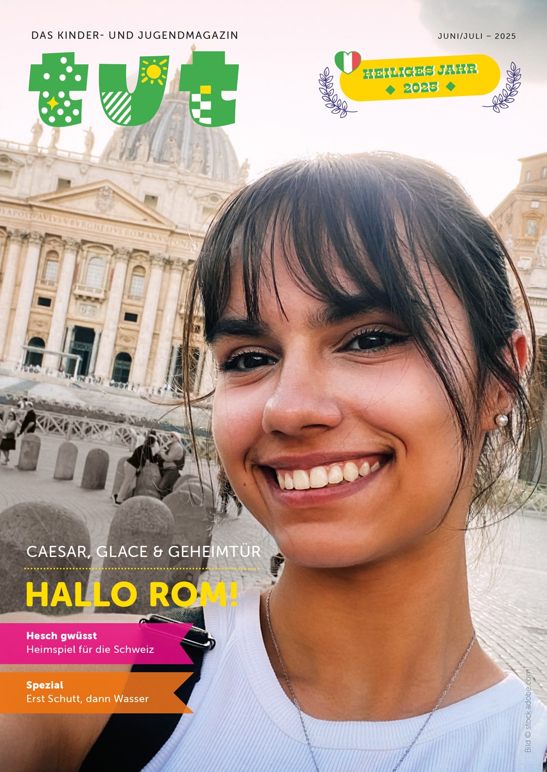 Rom steckt voller Überraschungen – von alten Inschriften über magische Brunnen bis zu Fussball, leckeren Gelaterien und einer geheimnisvollen Tür, die nur alle 25 Jahre aufgeht. Ari, der an der Schweizer Schule in Rom lernt, liebt genau solche Dinge – und träumt von autofreien Spielstrassen. Im Heft verrät er seine Lieblingsorte. Und: Caesars Redetricks bringen auch heute noch Pluspunkte!